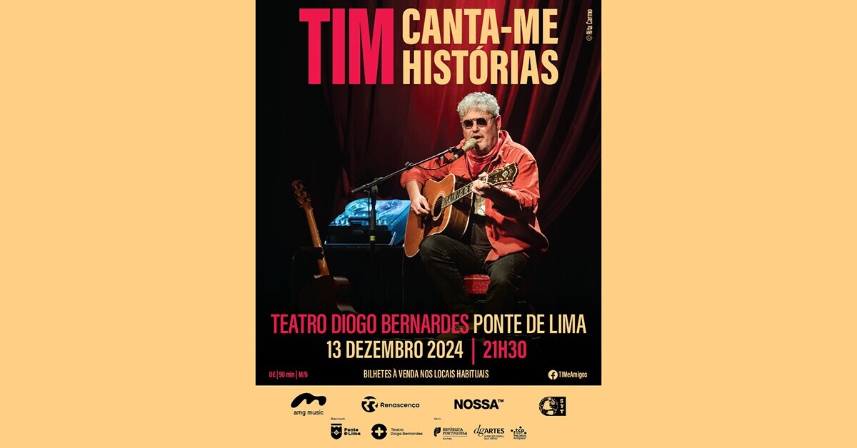 No dia 13 de dezembro de 2024, às 21h30, o Teatro Diogo Bernardes em Ponte de Lima apresenta, o espetáculo de música, Tim "Canta-me Histórias".