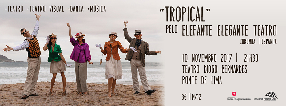 A 10 de Novembro, às 21h30, no Teatro Diogo Bernardes, em Ponte de Lima, Tropical, um espectáculo de teatro visual baseado no gesto e no movimento, criação de Elefante Elegante Teatro (Corunha - Espanha).