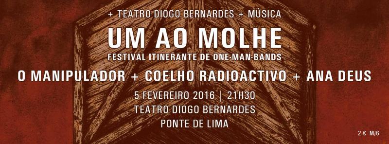 - Um Ao Molhe / Festival Itinerante de One-Man-Bands: O Manipulador + Coelho Radioactivo + Ana Deus | Teatro Diogo Bernardes | 5 de fevereiro de 2016