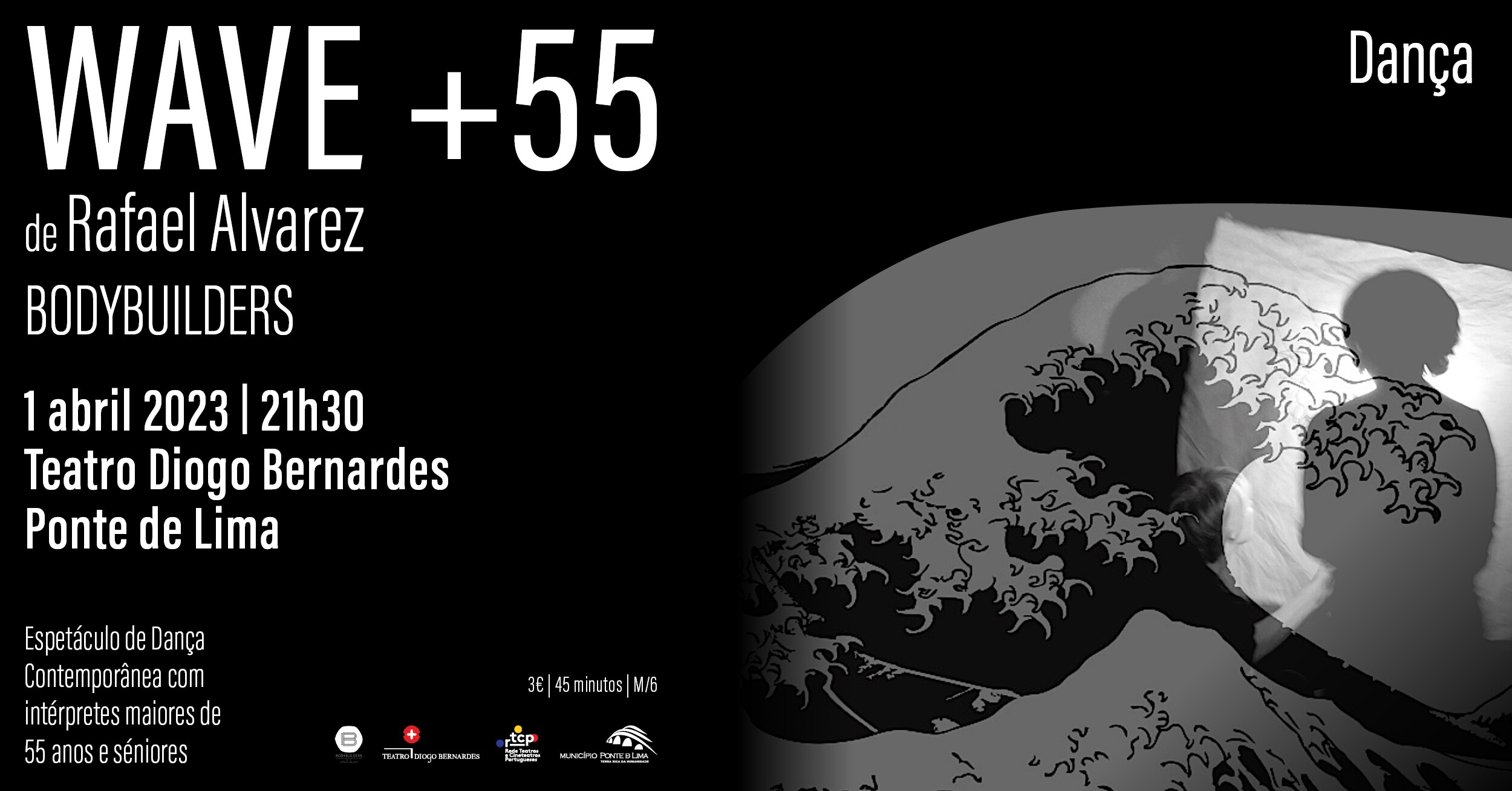 No dia 1 de abril de 2023, às 21h30, o Teatro Diogo Bernardes em Ponte de Lima apresenta, o espetáculo de Dança "WAVE +55" de Rafael Alvarez | Bodybuilders.