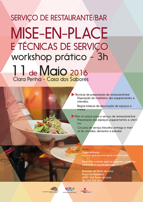 Visando a melhoria contínua da qualidade gastronómica e da prestação de um serviço de excelência como um fator de atratividade turística que capta e fideliza visitantes face à riqueza do seu património gastronómico e vínico, o Município de Ponte de Lima em colaboração com a Associação Empresarial de Ponte de Lima promove a realização do Workshop Prático - Serviço de Restaurante/Bar, Mise-En-Place e Técnicas de Serviço, iniciativa dirigida aos empresários / técnicos da Hotelaria e Restauração.