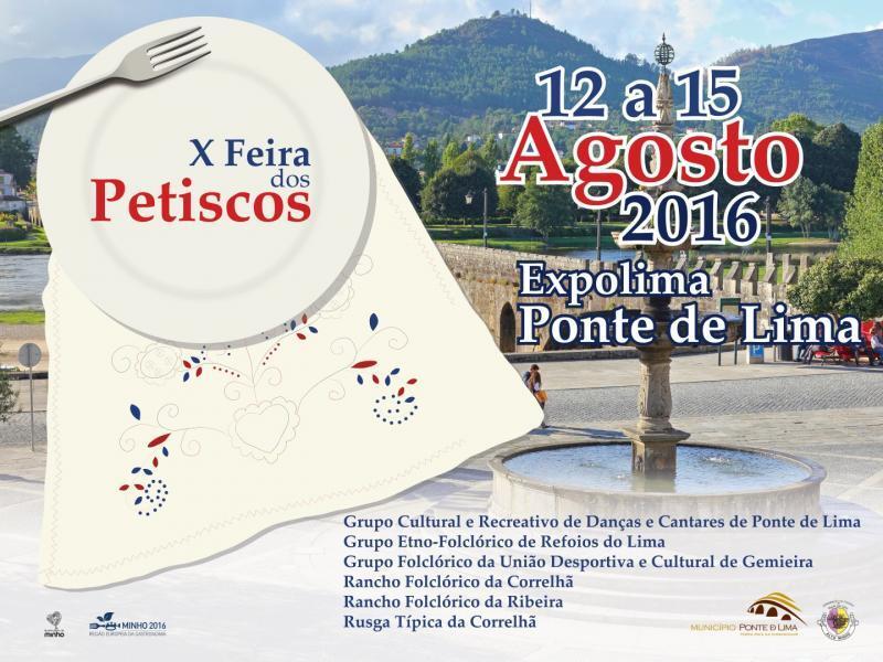Trata-se da X Feira dos Petiscos, que se realiza na Expolima, de 12 a 15 de agosto, numa iniciativa que conta com a participação de diversos Grupos Folclóricos do concelho, sob a coordenação da Associação de Folclore e do Município de Ponte de Lima.