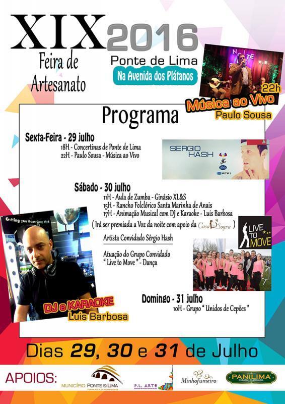 A XIX edição da Feira de Artesanato de Ponte de Lima, organizada pela P. L. Arte - Associação de Artesãos de Ponte de Lima, com o apoio do Município de Ponte de Lima, realiza-se no fim-de-semana, de 29, 30 e 31 de julho, na Avenida dos Plátanos.