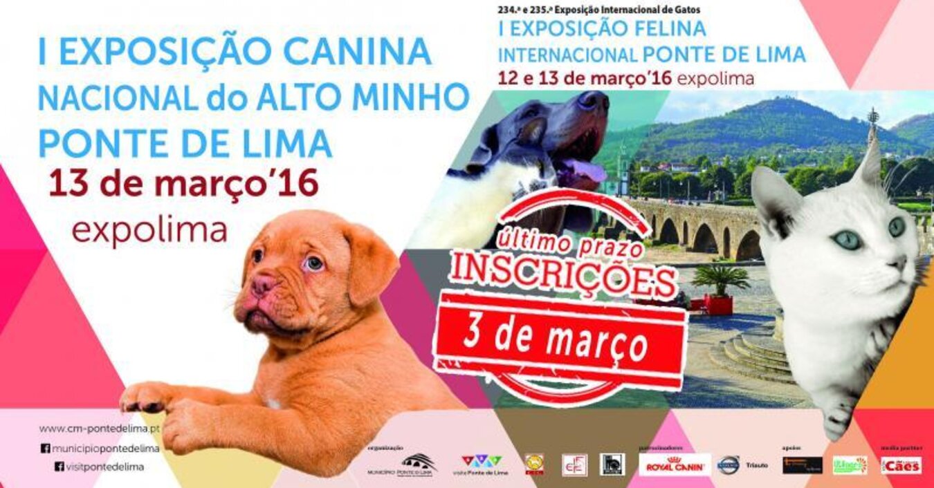 I Exposição Canina Nacional do Alto Minho | 13 de março de 2016 | 1ª Exposição Internacional de Gatos | 12 e 13 de Março / Expolima | 234ª e 235ª Exposições Internacionais de Gatos Campeões | Ponte de Lima