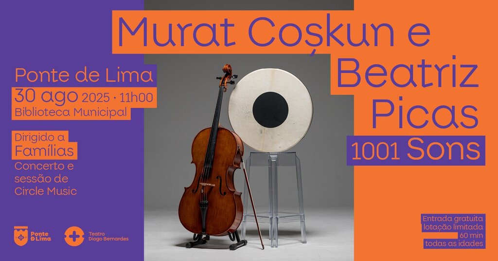 Informa-se que, devido às condições meteorológicas previstas para o dia 30 de agosto de 2025, o concerto e sessão de Circle Music, dirigido a famílias: 1001 Sons, com Murat Coskun e Beatriz Picas, foi transferido para a Biblioteca Municipal de Ponte de Lima.