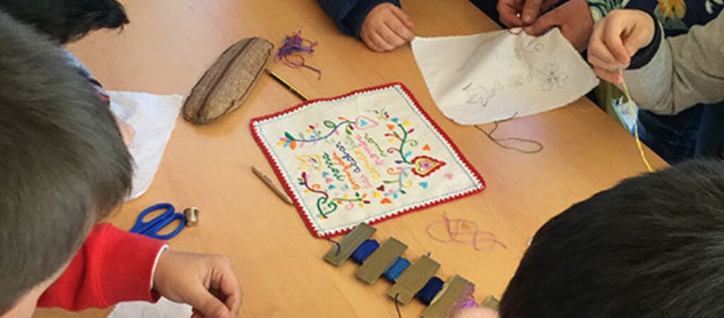 Alunos do Centro Educativo da Ribeira aprendem a bordar lenços de namorados