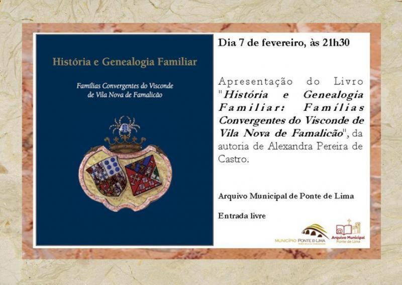 - Apresentação do livro a 'História e Genealogia Familiar: famílias convergentes do Visconde de Vila Nova de Famalicão' a 7 de fevereiro no Arquivo Municipal de Ponte de Lima