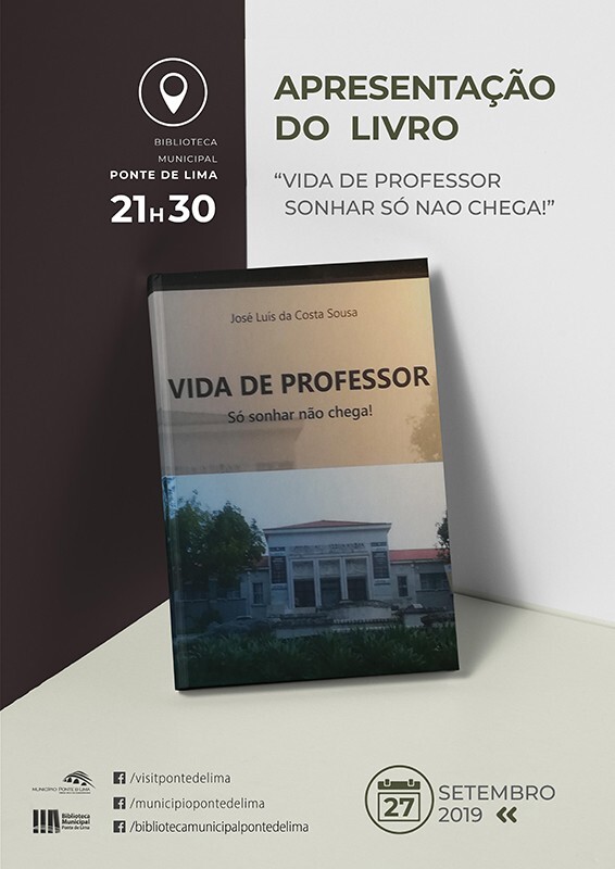 A Biblioteca Municipal de Ponte de Lima recebe no dia 27 de setembro de 2019, pelas 21h30, a sessão de apresentação do livro "Vida de Professor: só sonhar não chega!", do autor limiano José Luís da Costa Sousa.