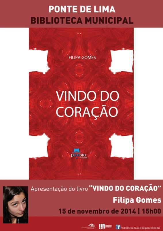 A Biblioteca Municipal de Ponte de Lima vai promover a apresentação da obra Vindo do Coração, da autoria da jovem Limiana, Filipa Gomes.