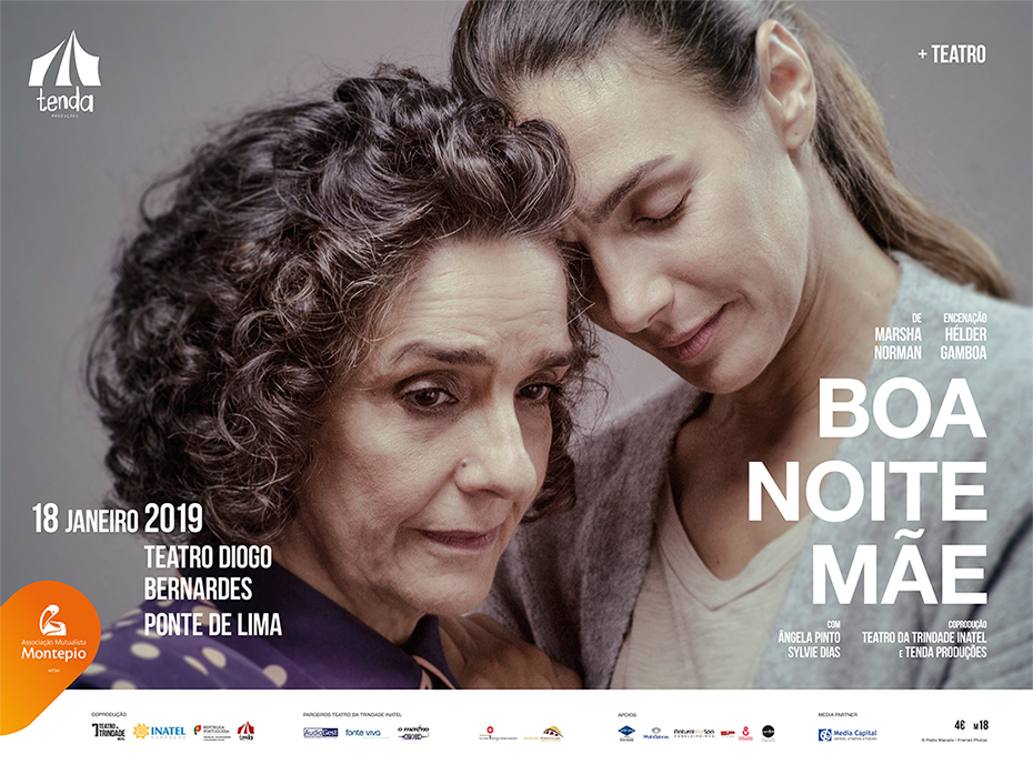 Sexta-feira à noite, dia 18 de Janeiro, a partir das 21h30, o Teatro Diogo Bernardes, em Ponte de Lima, apresenta o espectáculo de teatro Boa Noite Mãe, para maiores de 18 anos, da dramaturga norte-americana Marsha Norma, texto que venceu o Prémio Pulitzer, em 1983 e que, nesta encenação, a cargo de Hélder Gamboa, com interpretação de Ângela Pinto e Sylvie Dias, pela Tenda Produções, estreou na Sala Estúdio do Teatro da Trindade a 17 de Setembro.