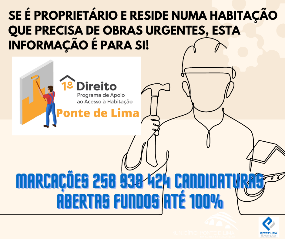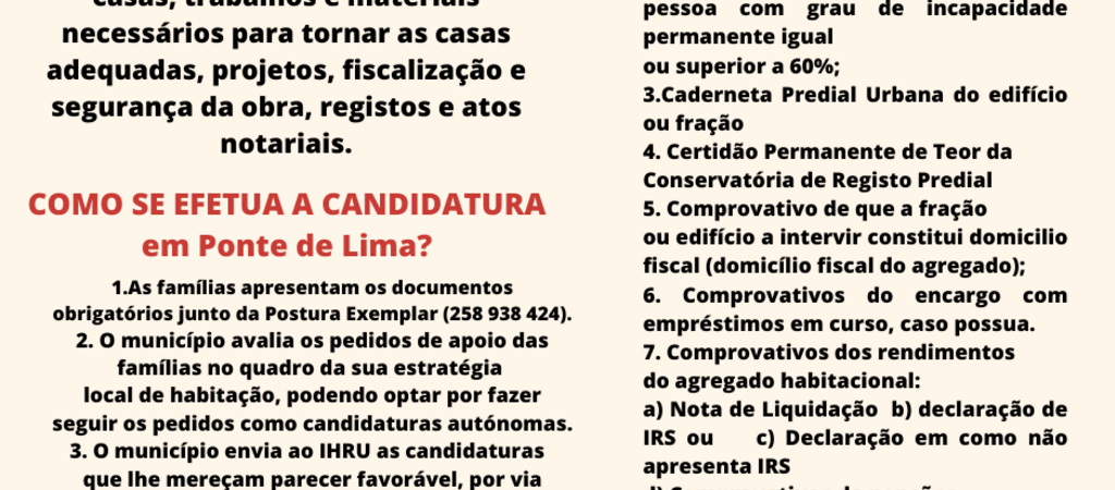 Manual de Apoio aos Beneficiários Diretos Estratégia Local de Habitação de Ponte de Lima - Candidatura ao 1º Direito: https://www.cm-pontedelima.pt/pages/1512