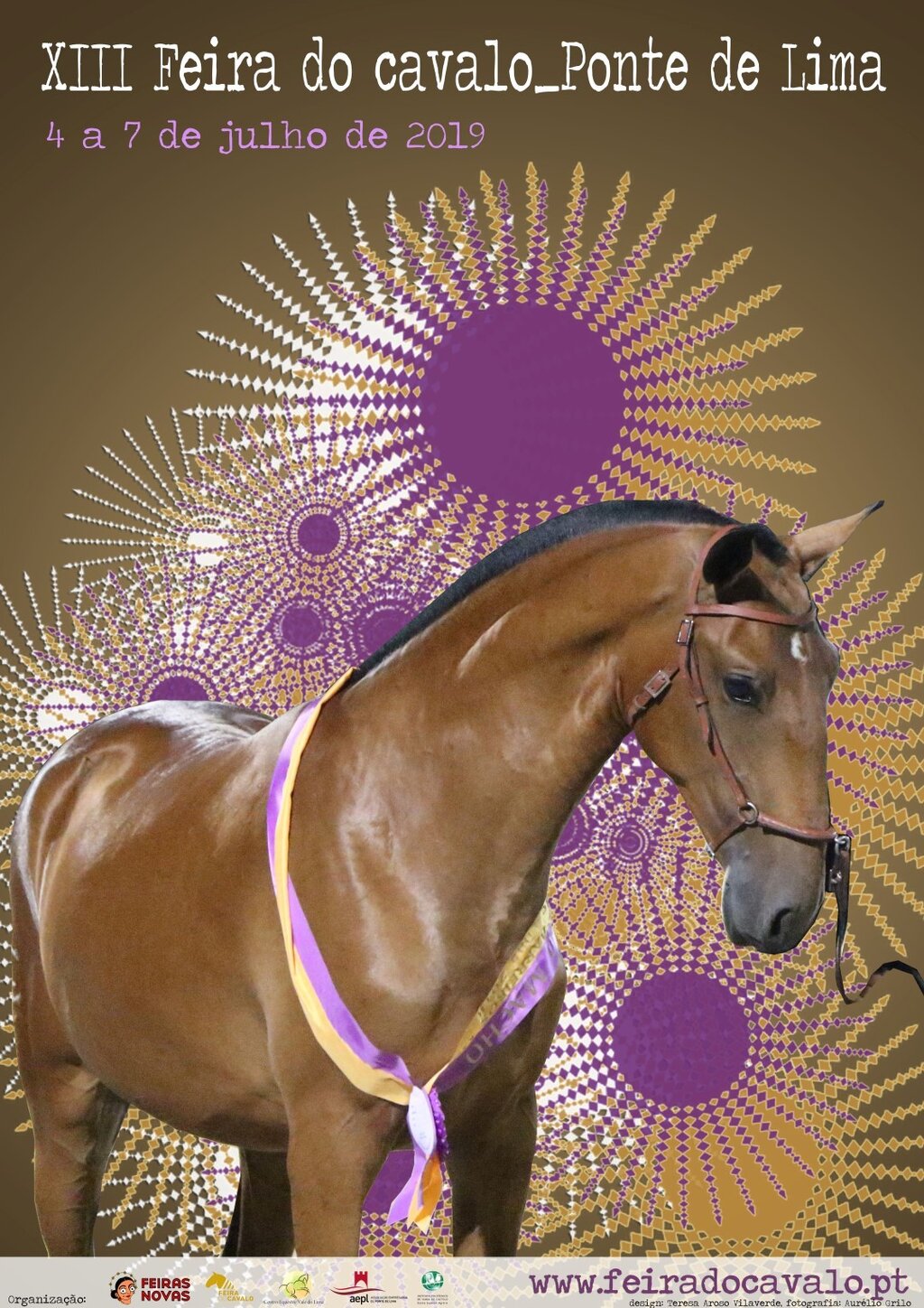 Este cartaz remete-nos para o ambiente festivo a que a feira do cavalo nos habituou, tendo como base a utilização das cores de Ponte de Lima: o roxo e o amarelo. A fotografia do cavalo é da autoria do fotógrafo Aurélio Grilo e o design do cartaz de Teresa Aroso Vilaverde.