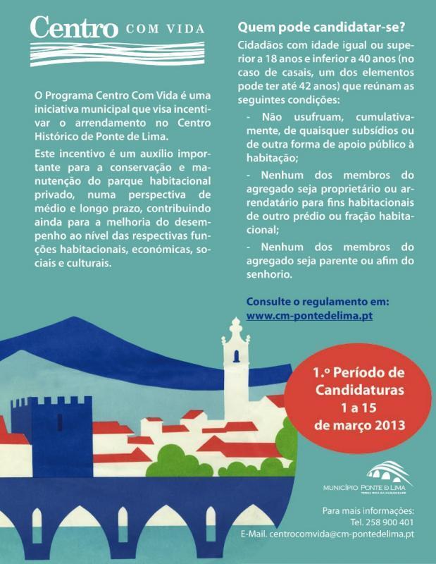 - Centro Com Vida - Incentivo ao Arrendamento no Centro Histórico de Ponte de Lima - Candidaturas de 1 a 15 de março