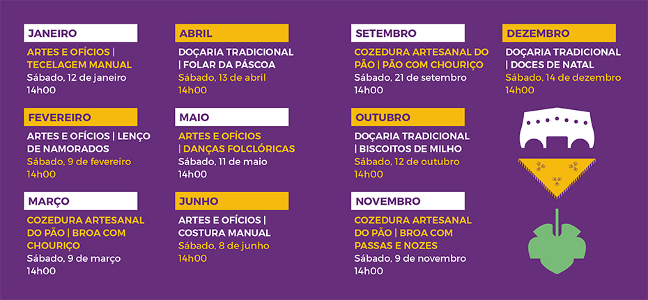 As temáticas a abordar são as artes e os ofícios, a cozedura artesanal do pão e a doçaria tradicional, nomeadamente a tecelagem manual, a broa com chouriço e os doces de Natal, entre outras.