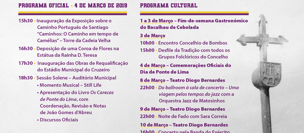 Por ocasião das comemorações do Dia de Ponte de Lima, assinalado a 4 de Março, o Município promove um conjunto de iniciativas, que se propagam a toda a Vila.