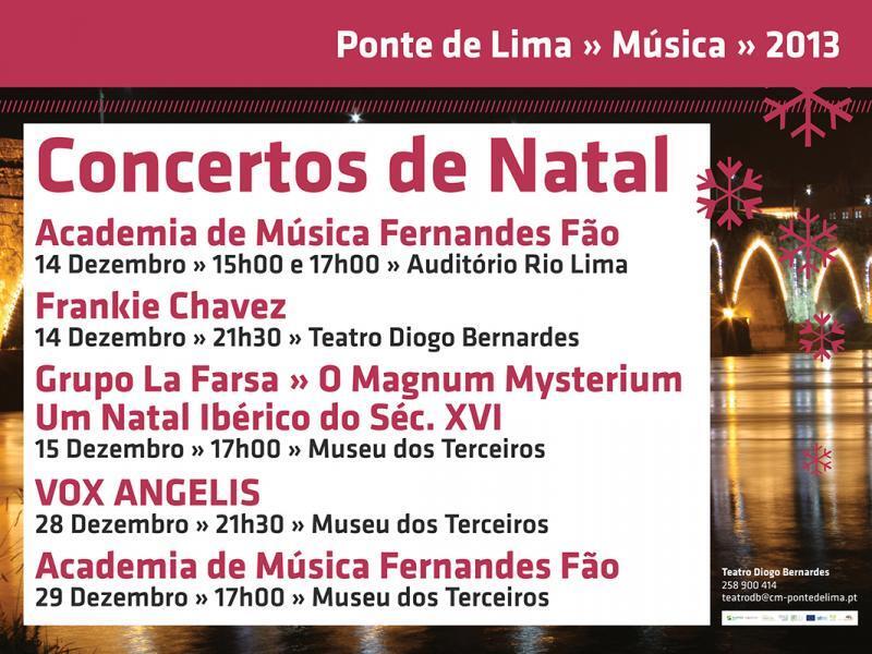 Destinado a todos os tipos de público, os Concertos de Natal apresentam música clássica, variante de música sacra, apresentados na Igreja de Santo António/, no Auditório Rio Lima e no Teatro Diogo Bernardes.