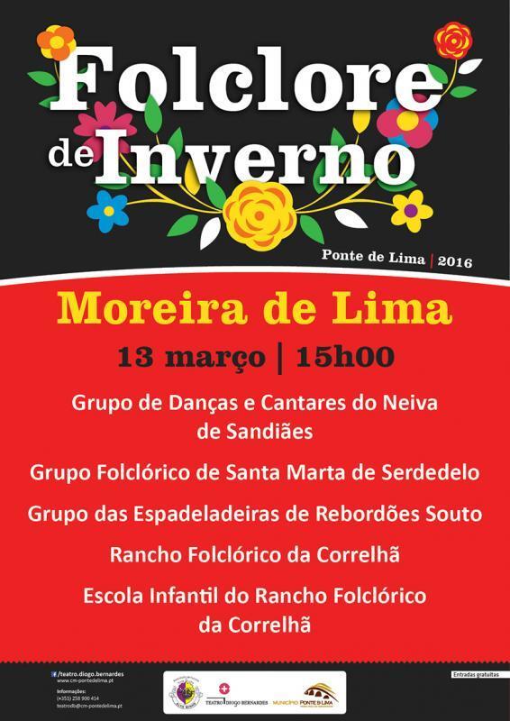 Por sua vez, no que respeita ao folclore, a freguesia de Moreira de Lima recebe o terceiro espectáculo do programa Folclore de Inverno, no domingo, 13 de Março, a partir das 15h00, com a participação dos seguintes grupos: