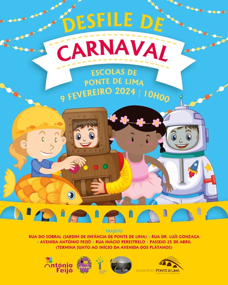Ponte de Lima volta a viver o Carnaval com o desfile das escolas. A alegria contagiante, própria da data, vivida pelas nossas crianças, volta às ruas do centro da vila no dia 9 de fevereiro. Pelas 10h, os alunos das escolas saem da Rua do Sobral, junto ao Jardim de Infância de Ponte de Lima e descem à vila espalhando a sua folia a animação, dando vida ao centro histórico e proporcionando um contacto próximo entre a comunidade educativa e as famílias e visitantes.
