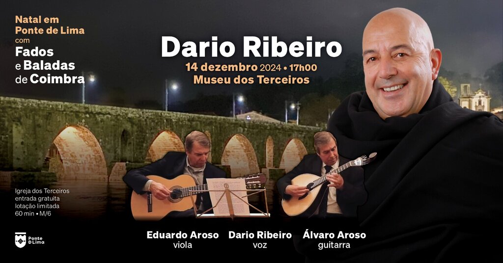 No próximo dia 14 de dezembro, às 17h00, integrando-se num conjunto mais vasto de ações e eventos da quadra natalícia promovidos pelo Município de Ponte de Lima, o Museu dos Terceiros abrirá as suas portas a um espetáculo musical dedicado aos Fados e Baladas de Coimbra, num conjunto de composições a serem interpretadas pelo limiano Dario Ribeiro, na voz, e pelos irmãos Aroso, que vêm da cidade dos estudantes e do Mondego, Álvaro Aroso na guitarra e Eduardo Aroso na viola de acompanhamento.