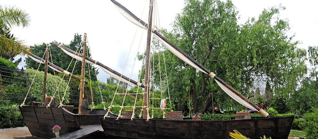 Genericamente, tratou-se de criar uma paisagem de costa caribenha utilizando elementos vegetais próprios do lugar, combinados com água e areia, local onde uma caravela portuguesa teria carregado plantas hortícolas para trazer para a Europa em 1500.