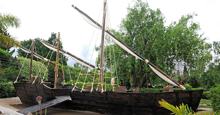 O jardim Novaterra – reportava-nos para o Brasil de 1500. “Na era dos descobrimentos das novas rotas navais para o comércio, uma caravela portuguesa chega a uma praia brasileira, no local onde mais tarde se fundaria uma colónia portuguesa.