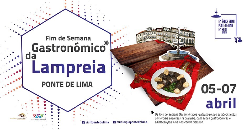 Considerando que Ponte de Lima é um dos maiores polos do turismo gastronómico, em plano mês da Lampreia, o Município realiza o Fim-de-semana Gastronómico da Lampreia, no próximo fim-de-semana, 5 a 7 de abril.