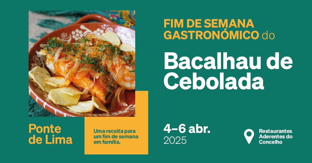 O Município de Ponte de Lima promove o Fim de Semana Gastronómico do Bacalhau de Cebolada de 4 a 6 de abril.