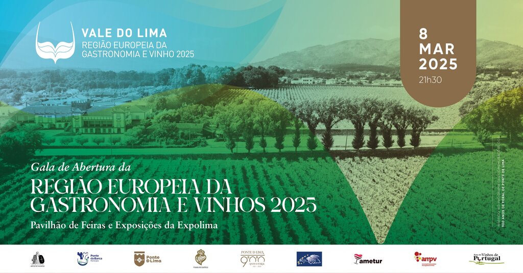 - Gala de Abertura do Vale do Lima – Região Europeia da Gastronomia e Vinho 2025 | 8 de março 21h30 – Pavilhão de Feiras e Exposições de Ponte de Lima