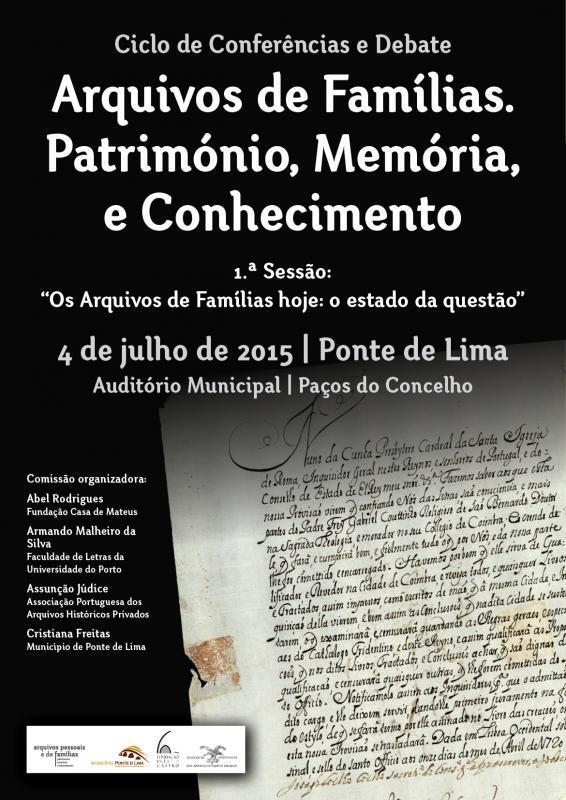 - I Ciclo de Conferências e Debates Arquivos Pessoais e de Famílias. Património, Memória, e Conhecimento | 4 de julho | Arquivo Municipal de Ponte de Lima