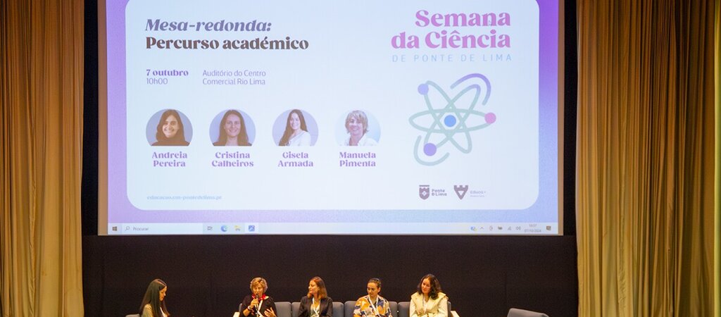 Gisela Armada, Andreia Pereira, Cristina Calheiros e Manuela Pimenta foram as convidadas para o primeiro painel da Semana da Ciência de Ponte de Lima, que arrancou esta segunda-feira no Auditório Rio Lima.