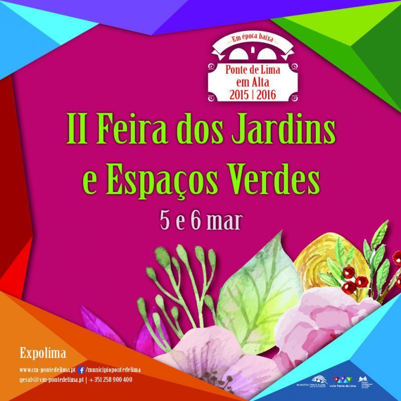 Pelo segundo ano consecutivo o Município de Ponte de Lima promove a Feira dos Jardins e Espaços Verdes, certame que se dedica às plantas, ao mobiliário urbano e aos produtos e materiais de suporte à atividade de produção de plantas, aos equipamentos de jardinagem e às tecnologias de gestão dos espaços verdes.