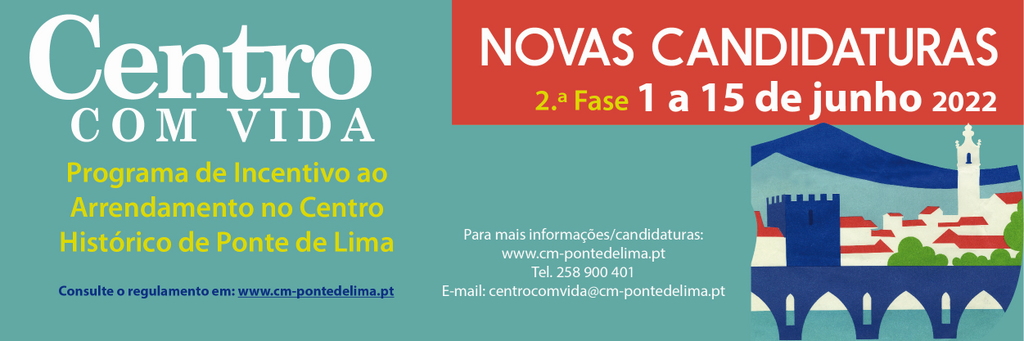 Centro Com Vida – projeto implementado pelo Município de Ponte de Lima como incentivo ao arrendamento na zona do Centro Histórico – 2.ª fase, tem candidaturas abertas até 15 de junho.