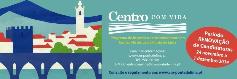 O Programa Centro Com Vida é uma iniciativa do Município de Ponte de Lima que visa incentivar o arrendamento no Centro Histórico, com três períodos de candidatura por ano, março, junho e outubro.