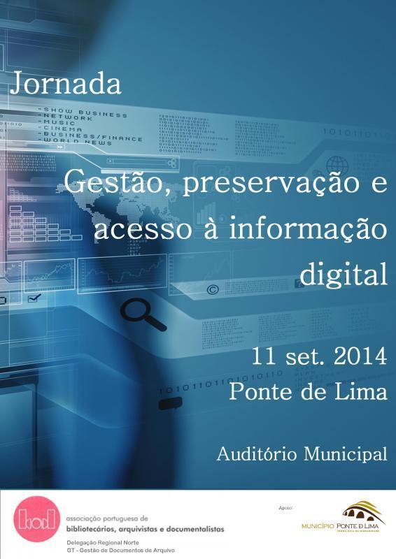 O Município de Ponte de Lima apoia a jornada "Gestão, preservação e acesso à informação digital", promovida pela Associação Portuguesa de Bibliotecários, Arquivistas e Documentalistas/Grupo de Trabalho de Gestão de Documentos de Arquivo (GT-GDA) e organizada conjuntamente com a Delegação Regional do Norte.