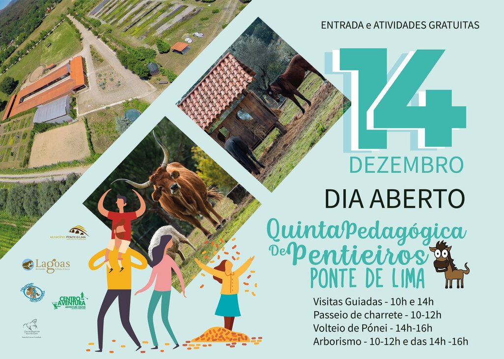 Segue-se, no dia 14 de dezembro, ‘Um Dia Aberto na Quinta de Pentieiros’, com entradas e atividades gratuitas, promovidas pelo Serviço Área Protegida e pelos seus parceiros. Passeios de pónei e de charrete, visitas guiadas e o circuito de arborismo vão animar o dia dos participantes que se quiserem juntar a nós.
