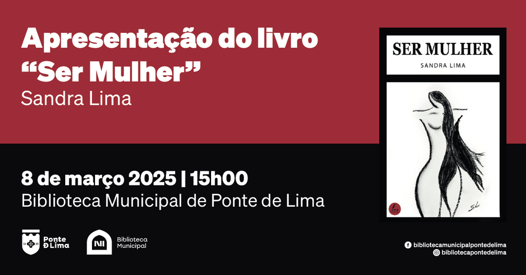O Município de Ponte de Lima vai promover a apresentação do livro "Ser Mulher", da escritora Sandra Lima, no dia 8 de março, às 15h00, na Biblioteca Municipal.