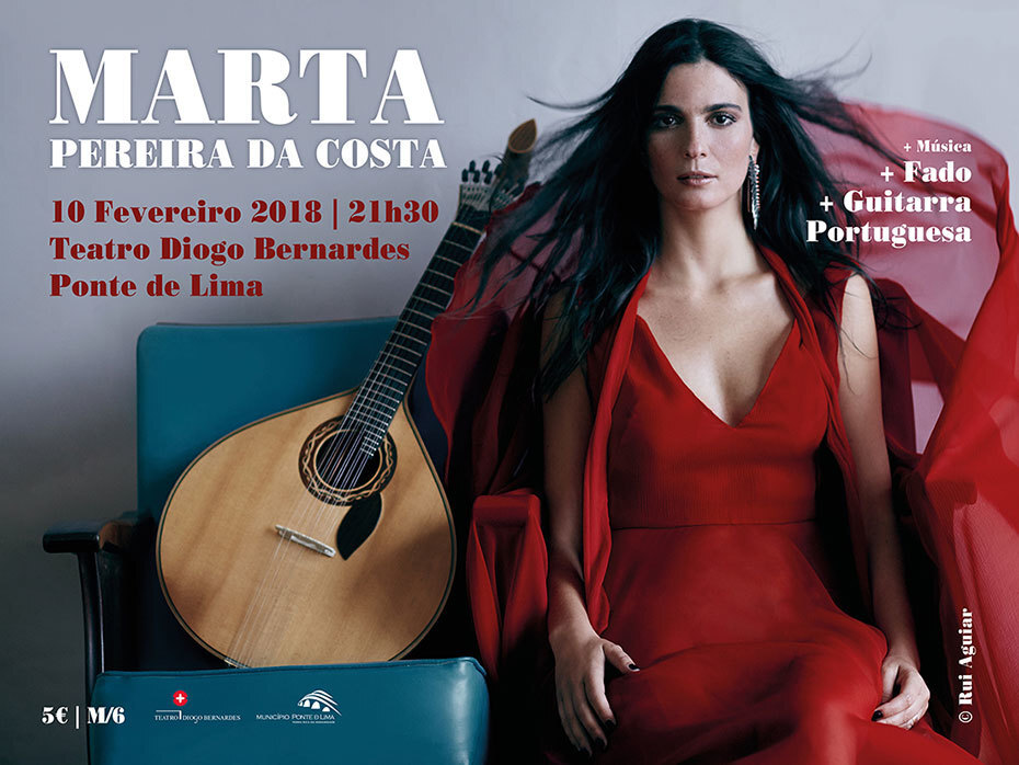 No próximo sábado, 10 de fevereiro, às 21h30, no Teatro Diogo Bernardes, em Ponte de Lima, o concerto em que a guitarra portuguesa ocupará o lugar de excelência pelas mãos de uma exímia intérprete, Marta Pereira da Costa, cujos concertos têm encantado plateias em Portugal e no estrangeiro, a única guitarrista profissional de Fado a nível Mundial e que foi distinguida em 2014 pela Fundação Amália Rodrigues com o “Prémio Instrumentista”.