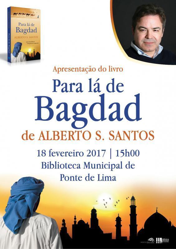 O Município de Ponte de Lima promove o lançamento do quarto romance de Alberto S. Santos - "Para lá de Bagdad" - no próximo dia 18 de fevereiro, pelas 15h00, no Auditório da Biblioteca Municipal (BM).