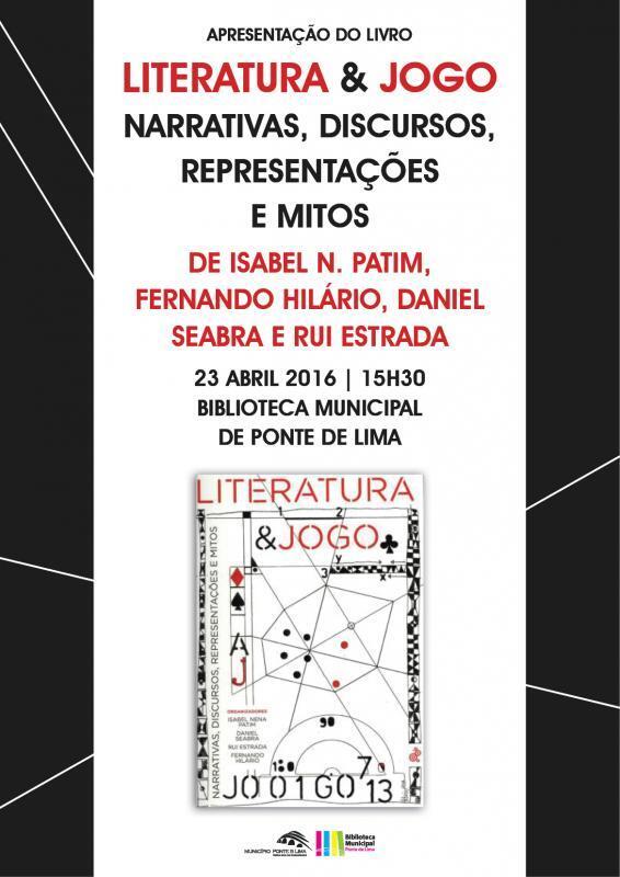 O Município de Ponte de Lima, no âmbito das comemorações do Dia Mundial do Livro e do Direito do Autor, promove a apresentação do livro "Literatura & Jogo - narrativas, discursos, representações e mitos", organizado por Isabel Nena Patim, Fernando Hilário, Daniel Seabra e Rui Estrada.