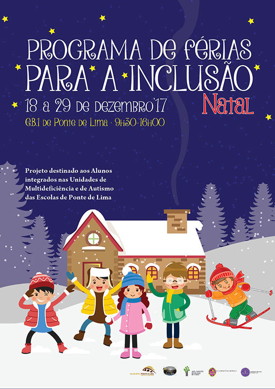 O Município de Ponte de Lima, em parceria com o Agrupamento de Escolas de Ponte de Lima, o Agrupamento de Escolas de Freixo, o Agrupamento de Escolas de Arcozelo e o Agrupamento de Escolas António Feijó, promove mais uma edição do Programa de Férias para a Inclusão, a decorrer entre os dias 18 e 29 de dezembro, nas instalações da EB 1 de Ponte de Lima, entre as 9h30 e as 16h00.