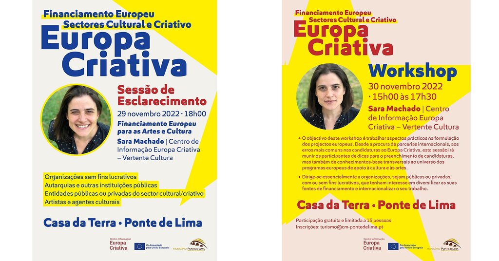Esta sessão de apresentação do Europa Criativa em Ponte de Lima incidirá sobre a Vertente Cultura, que abrange todos os sectores da cultura e da criação (com exceção dos sectores audiovisual e cinematográfico), no sentido de apresentar as diferentes linhas de financiamento.