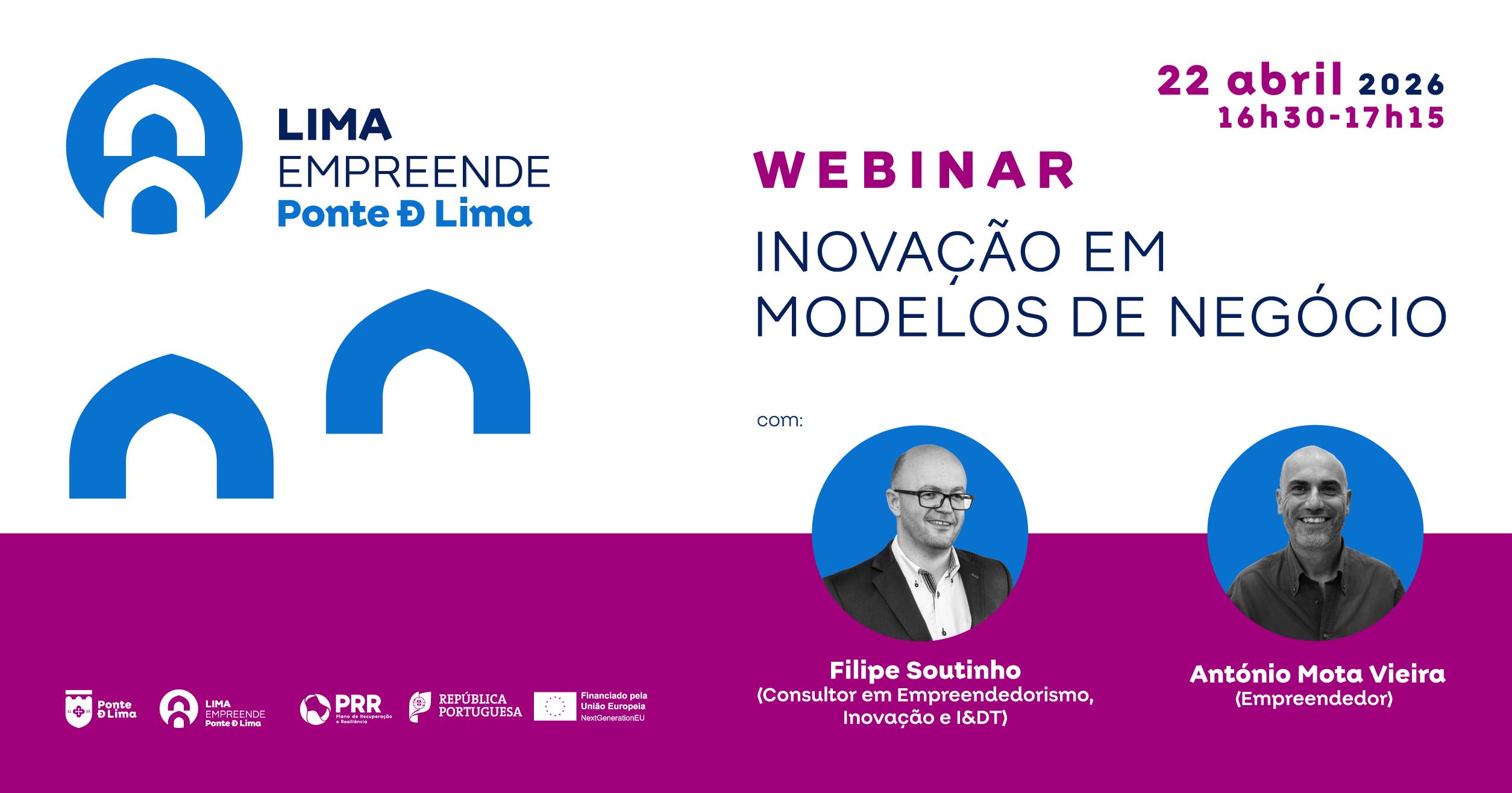 No dia 22 de abril, das 16h30 às 17h15, o Município de Ponte de Lima realiza o webinar “Inovação em modelos de negócio”, integrado na candidatura Incubadora e espaço de coworking – Ponte de Lima Empreende.
