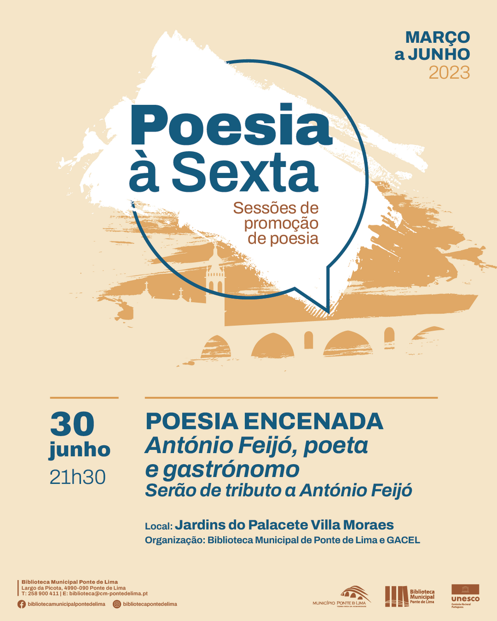 De entrada livre, esta sessão, organizada pelo Município de Ponte de Lima em parceria com a GACEL – Grupo de Ação, Cultural e Estudos Limianos, convida todos os amantes da poesia, da literatura, do teatro, da história local, da cultura e das artes em geral a reviverem as palavras e as obras do poeta diplomata.