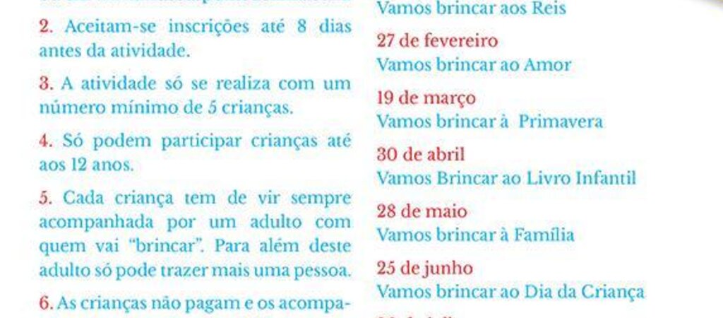 A iniciativa destina-se às famílias, no sentido de proporcionar momentos de lazer, aventura e muita brincadeira, entre adultos e crianças até aos 12 anos. Dedique-se à brincadeira no último sábado de cada mês no Museu do Brinquedo Português. Marque na sua agenda as próximas brincadeiras: