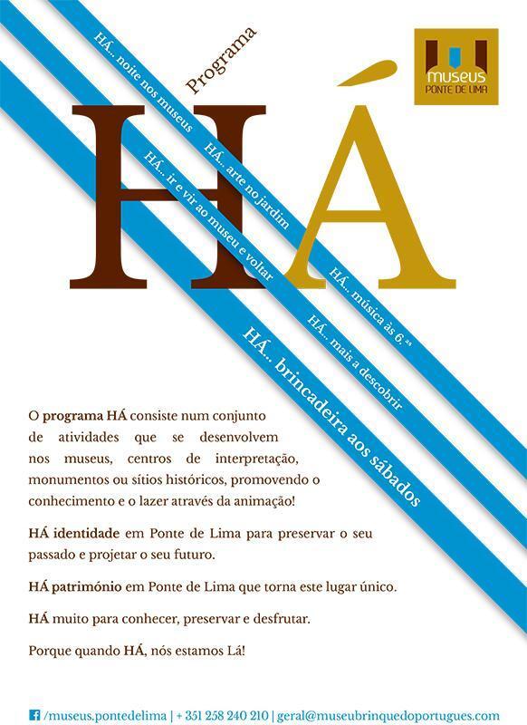 HÁ... noite nos Museus, HÁ... arte no jardim, HÁ... música às 6.ªs, HÁ... ir e vir ao museu e voltar, HÁ... mais a descobrir, HÁ... brincadeira aos sábados, este é o slogan do HÁ Programa, dinamizado pelos Museus de Ponte de Lima.
