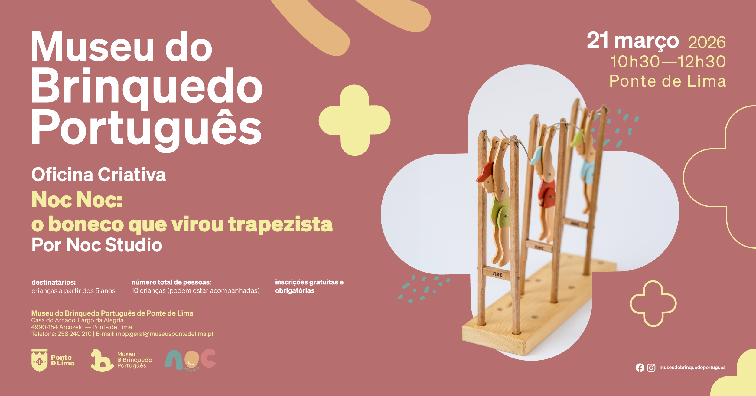 A proposta desta sessão intitula-se "Noc Noc: o boneco que virou trapezista". Durante a atividade, os participantes serão convidados a dar forma a esta divertida personagem, construindo o seu próprio boneco e descobrindo o prazer de criar com as próprias mãos. No final, cada participante poderá levar consigo o brinquedo criado, pronto para inspirar novas histórias e brincadeiras.