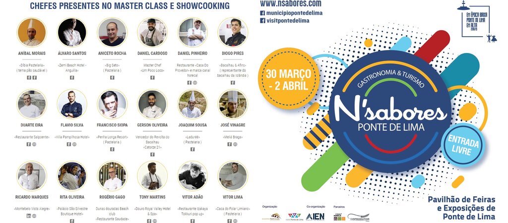 Durante quatro dias, o Pavilhão de Feiras e Exposições de Ponte de Lima, acolhe a feira N`Sabores Gastronomia & Turismo, de entrada gratuita, com Showcookings de culinária e pastelaria pela mão de 18 chefs, música, dança e uma formação a quatro mãos.