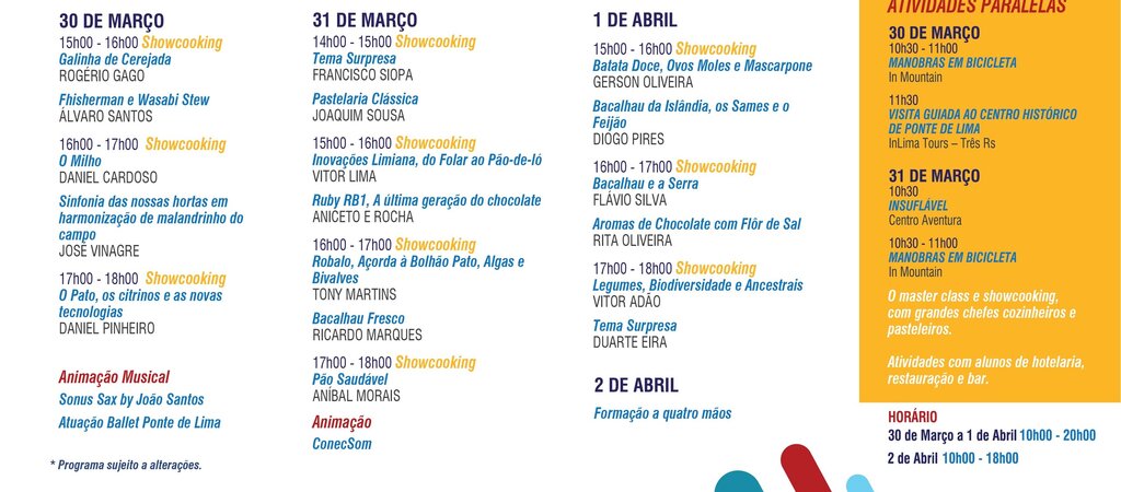 - N’Sabores Ponte de Lima- Gastronomia e Turismo, de 30 de março a 2 de abril, no Pavilhão de Feiras e Exposições de Ponte de Lima