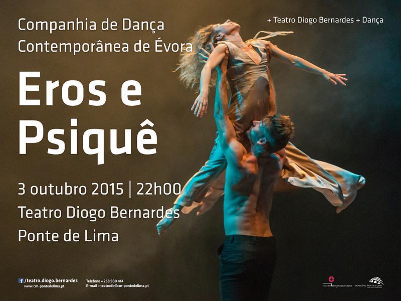 A nova temporada de espectáculos, eventos e actividades programados pelo Teatro Diogo Bernardes para o período compreendido entre Outubro de 2015 e Junho de 2016, mês que se dará início aos grandes eventos de Verão incluídos na programação de Ponte de Lima ConVida, arranca no próximo sábado, 3 de Outubro, com o espectáculo "Eros e Psiquê", pela Companhia de Dança Contemporânea de Évora, com Direcção e Coreografia de Nélia Pinheiro, Figurinos de José António Tenente e Interpretação pelos Bailarinos Gonçalo Andrade, Fábio Blanco e Nélia Pinheiro.