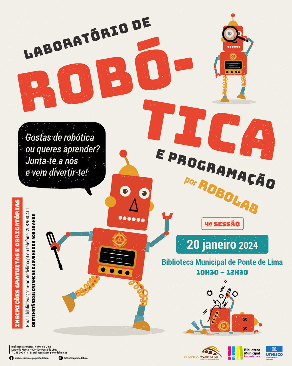 A participação é gratuita, mas de inscrição obrigatória através de e-mail para biblioteca@cm-pontedelima.pt ou telefone 258 900 411, com vagas limitadas.
